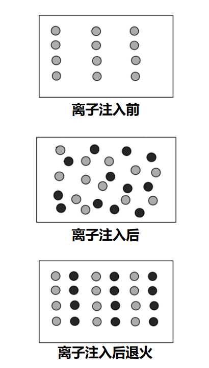 離子注入后將原子撞出晶格結(jié)構(gòu)而造成晶格損傷,通過快速退火使原材料的原子和雜質(zhì)原子在熱的作用下發(fā)生移動,并最終擴(kuò)散到晶格點,形成電學(xué),活性的離子摻雜。